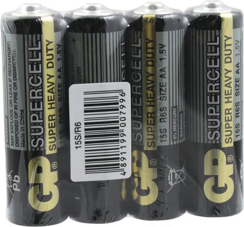 Характеристики GP Батарейка солевая Supercell Super Heavy Duty, AA, R6-4s, 1.5в, спайка, 4 шт